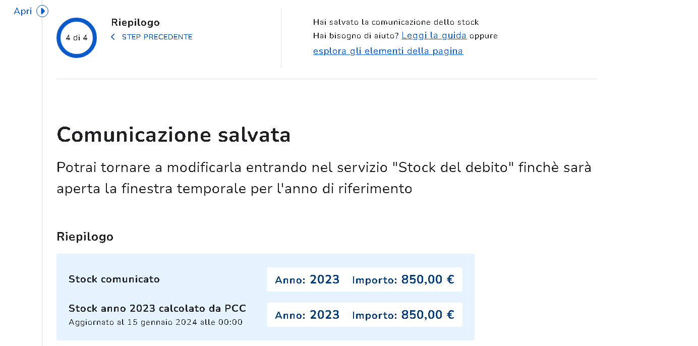 Stock del debito al 31.12.2023