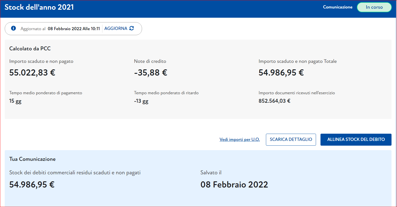 - L'ammontare complessivo dei debiti e il numero delle imprese creditrici